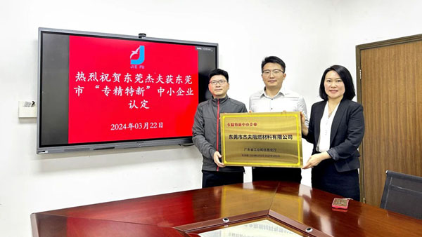 了解更多3月22日,東莞市“專精特新”企業(yè)聯(lián)合會一行來東莞杰夫阻燃材料有限公司開展“企業(yè)授牌及走訪調(diào)研”并舉行授牌儀式,東莞杰夫總經(jīng)辦主任李康、財務(wù)經(jīng)理封東弟參加授牌儀式,并與專精特新企業(yè)聯(lián)合會就政策支持、開展市場拓展、產(chǎn)業(yè)鏈上下游對接合作,提供技術(shù)咨詢及產(chǎn)學(xué)研合作,搭建融資橋梁解決融資難題展開了深入的交流。